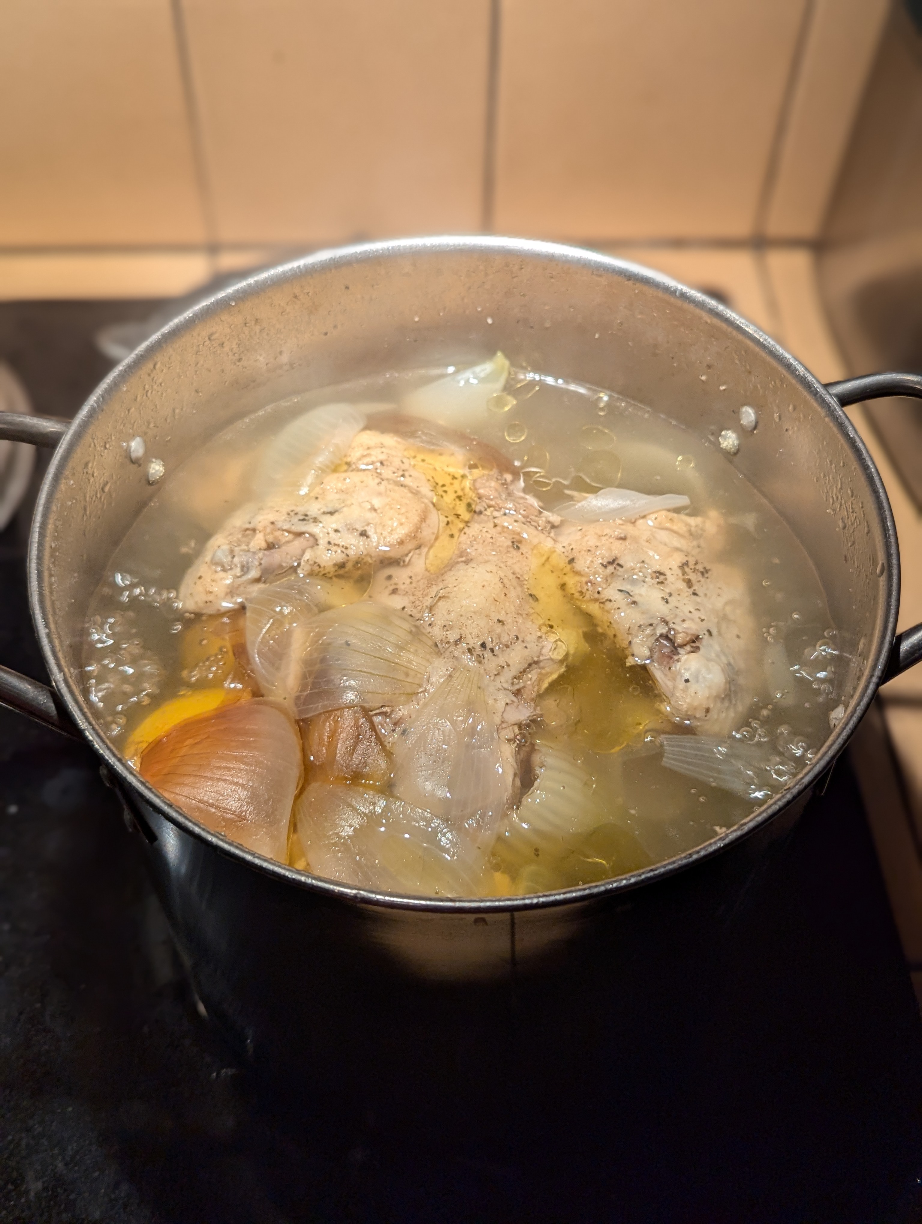 - Make the Stock: Roast a whole chicken, then use the carcass and leftover meat to make a rich chicken stock. Do this the night before to save time.